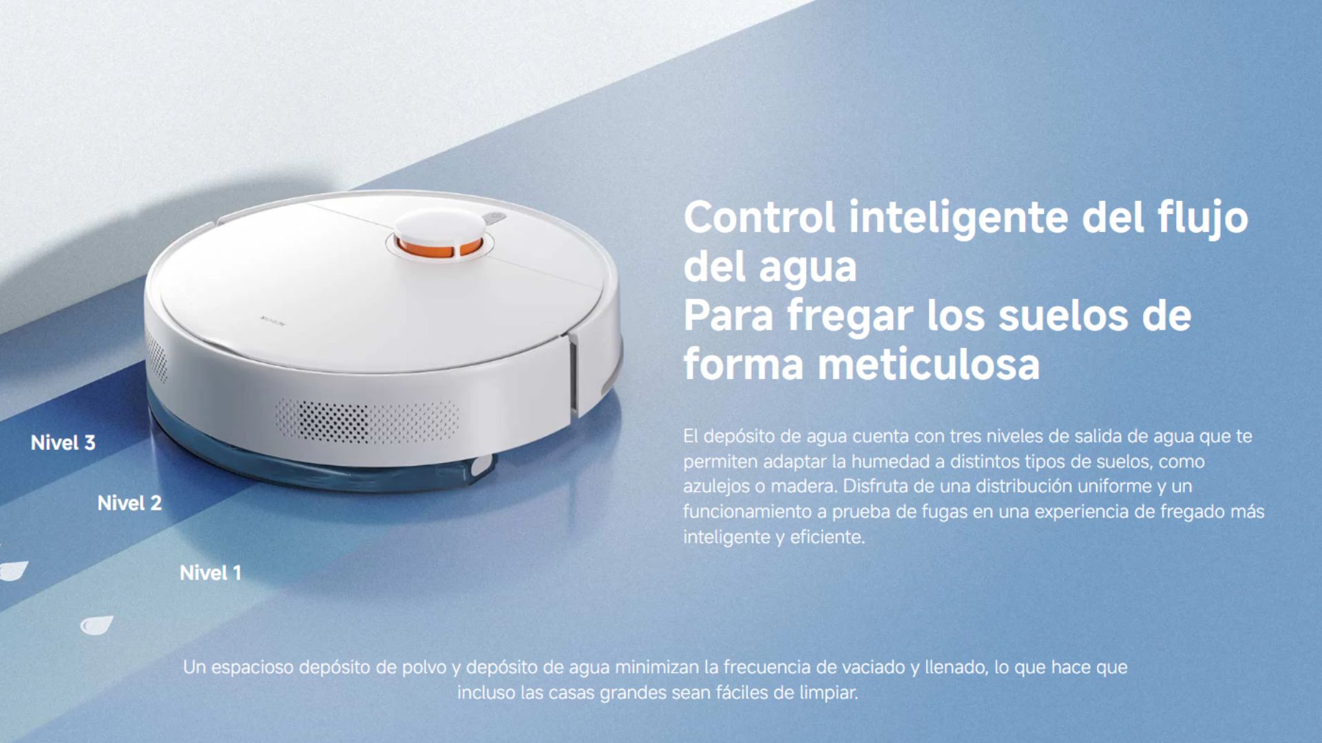 Mayor potencia de succión y un depósito de agua más grande para ofrecer una limpieza impecable