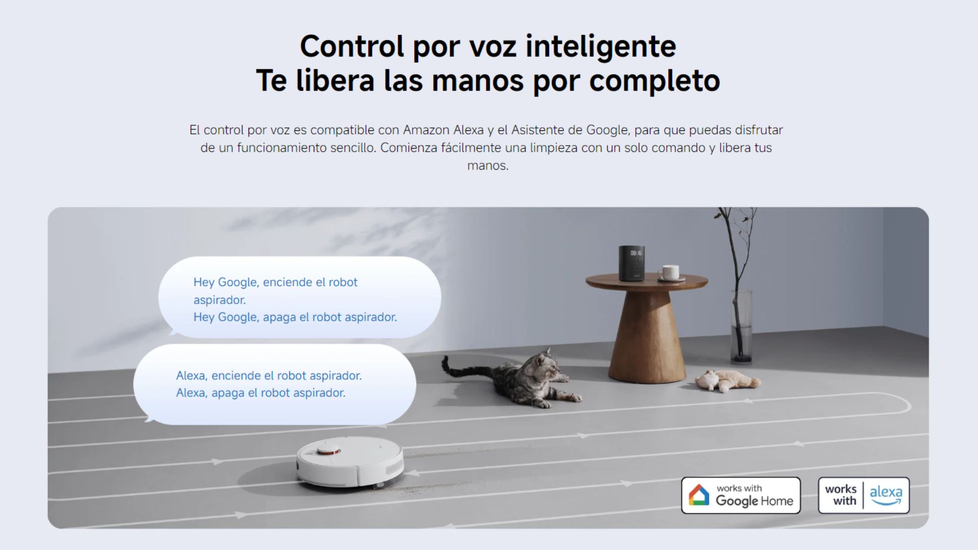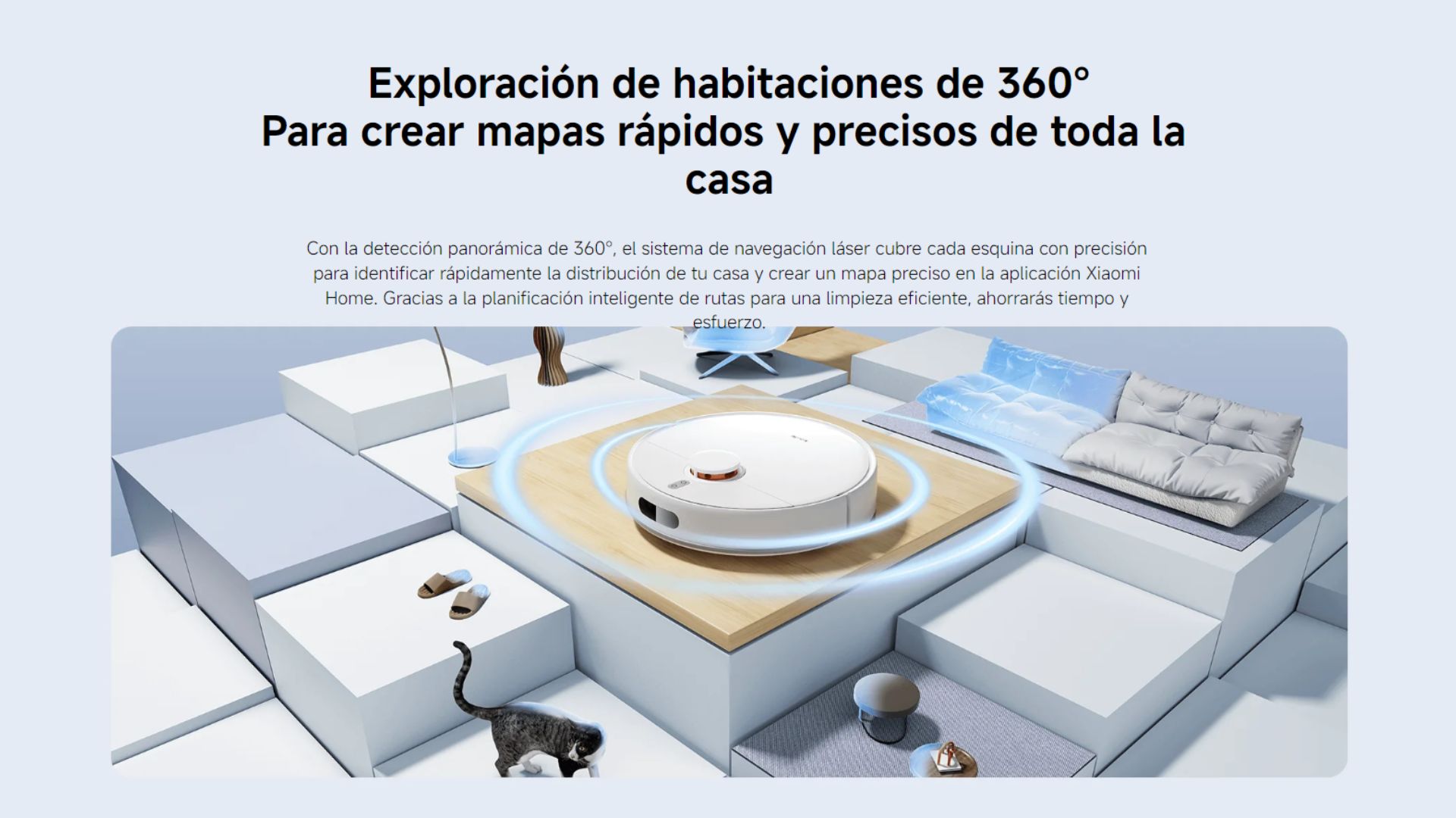 Contenido del Paquete 1x robot aspirador (cepillo principal, cubierta del cepillo principal y depósito de polvo instalados) | 1x conjunto de mopa y depósito de agua (almohadilla de la mopa instalada) | 1x cepillo lateral | 1x adaptador de corriente | 1x base de carga | 1x manual de usuario | 1x aviso de garantía