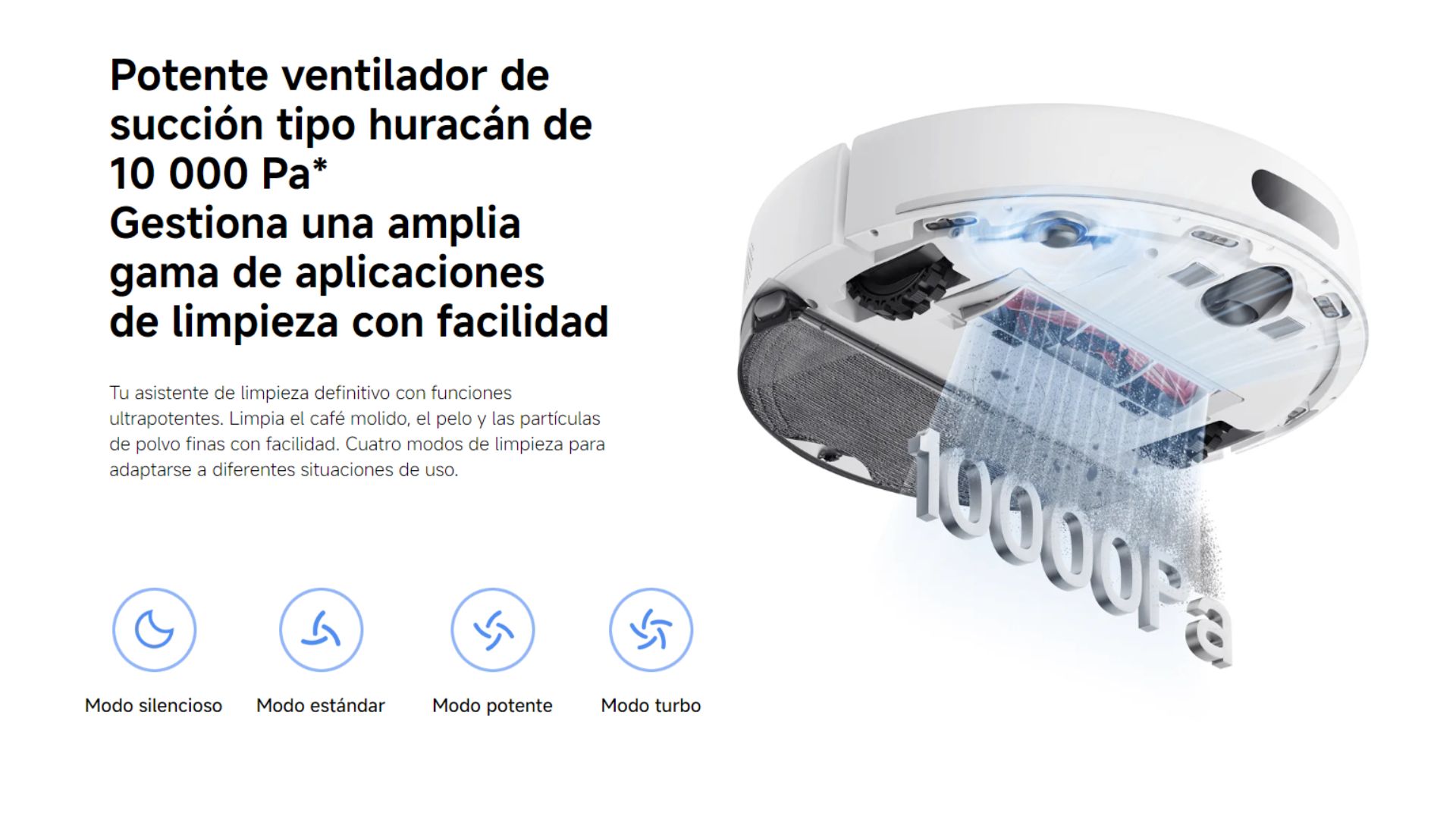 Contenido del Paquete 1 robot aspirador | 1x base de carga | 1x cepillo lateral (no instalado) | 1x cepillo principal (preinstalado) | 1x placa de mopa (incluida la almohadilla) | 1x depósito de polvo (preinstalado) | 1x adaptador | 1x manual de usuario | 1x aviso de garantía | 1x cubierta del cepillo