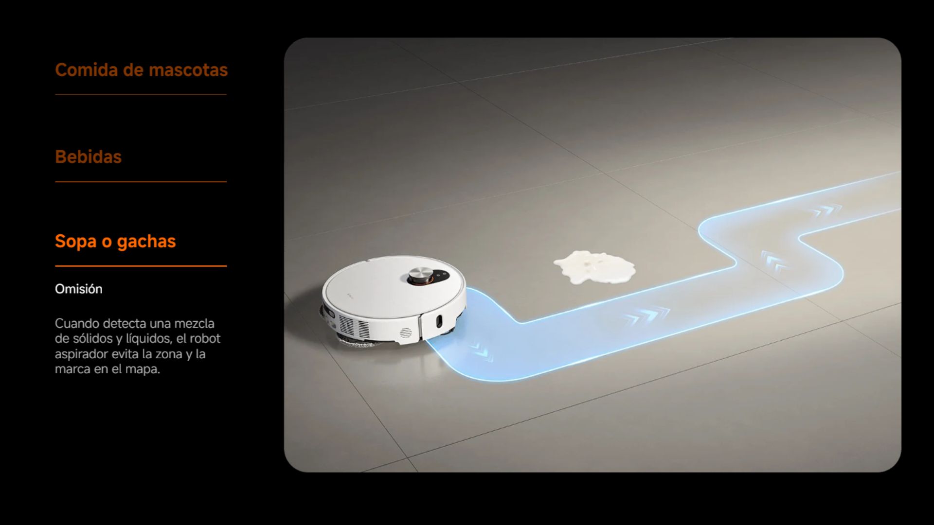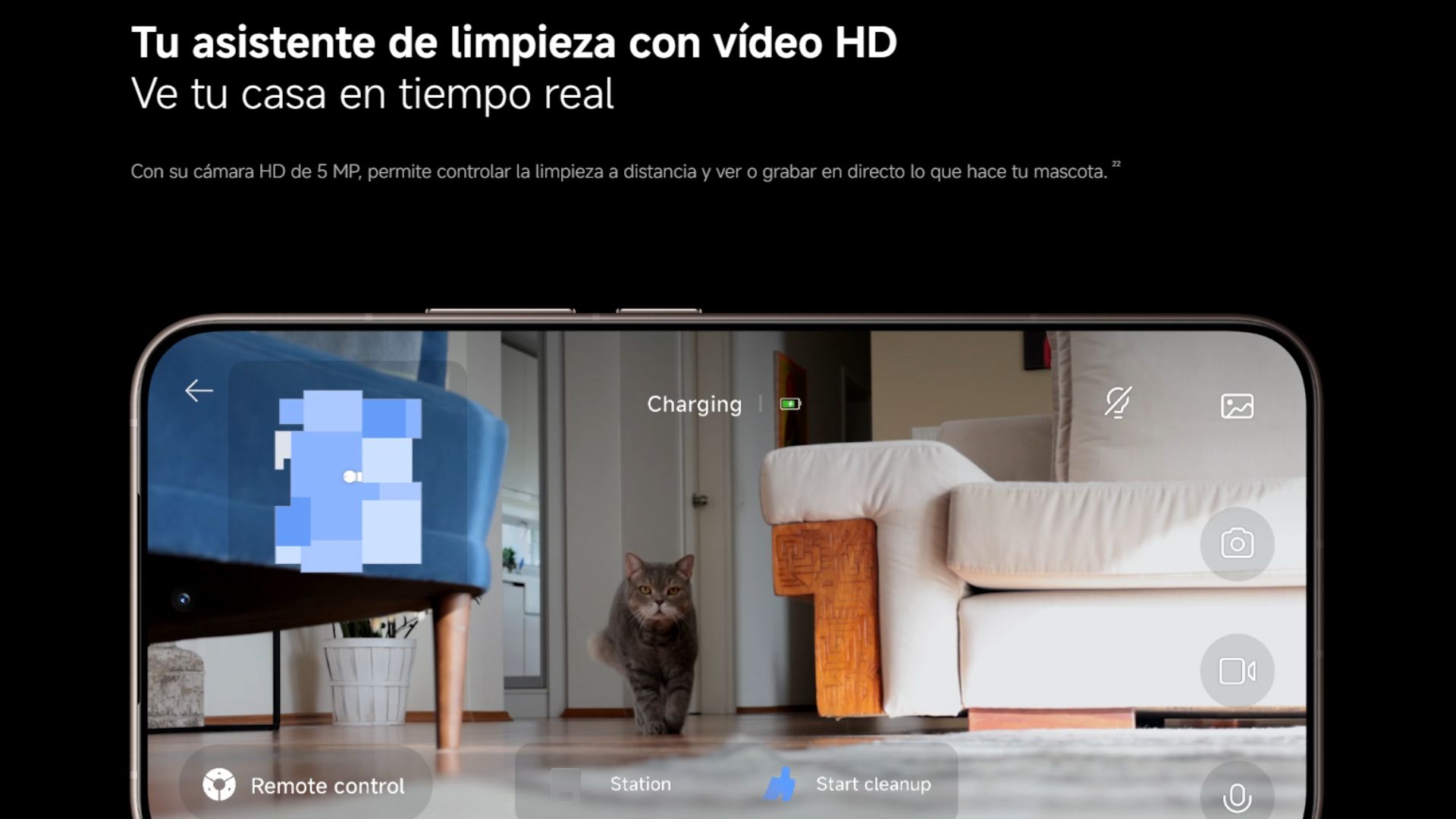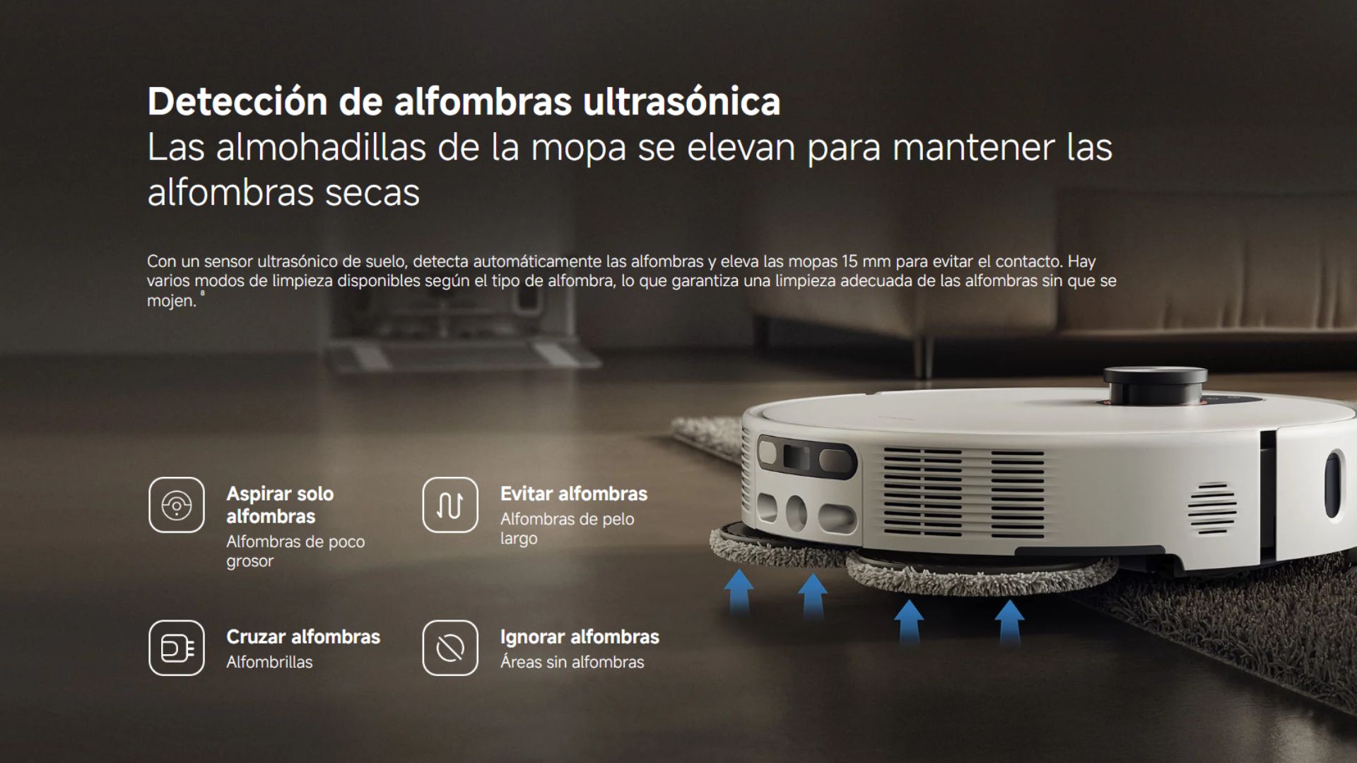 Con una cámara RGB, dos cámaras infrarrojas y un proyector infrarrojo 3D de puntos, el robot aspirador detecta la suciedad y percibe el entorno en tiempo real, lo que le permite limpiar de manera flexible e inteligente, sin movimientos aleatorios.