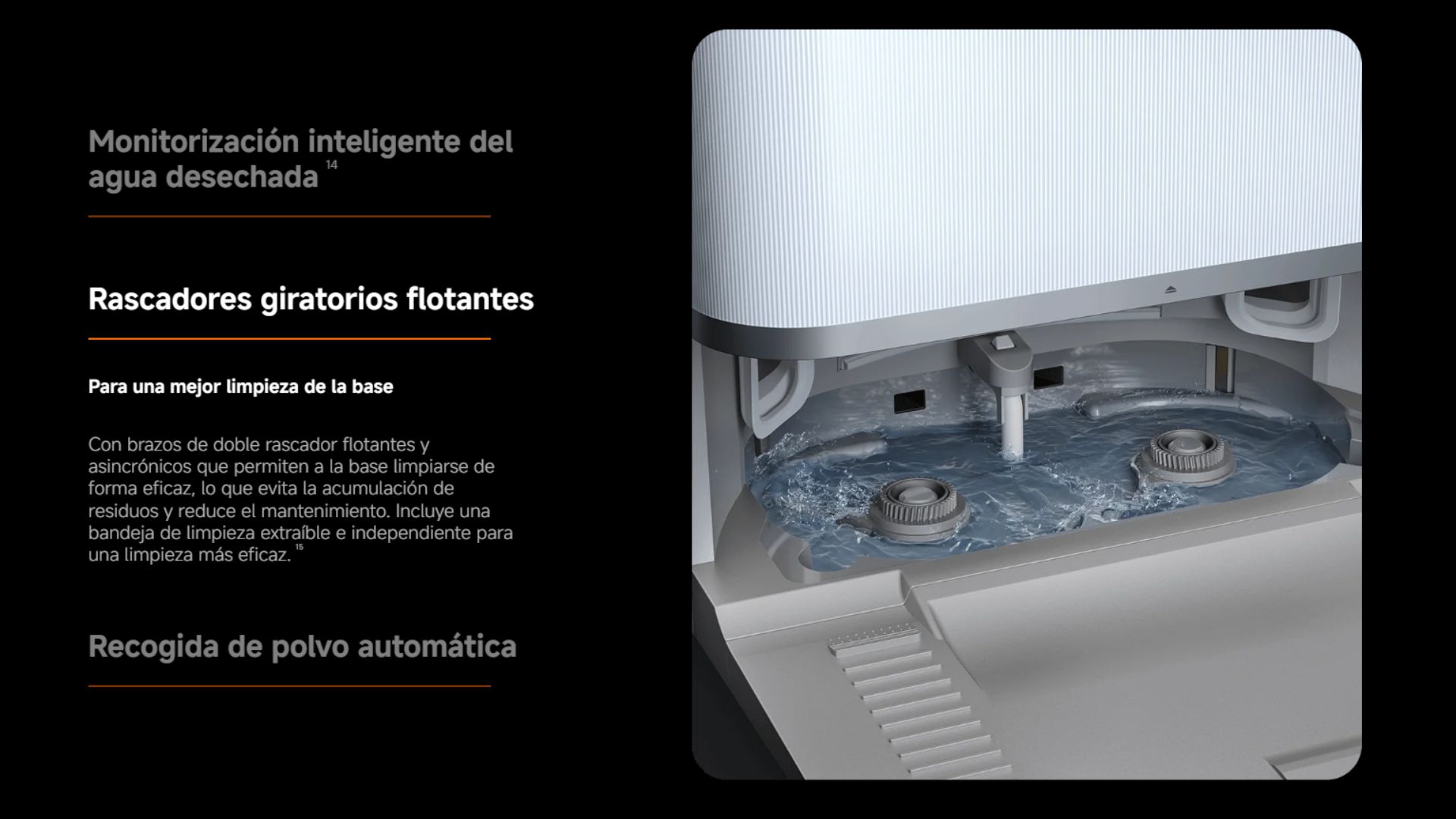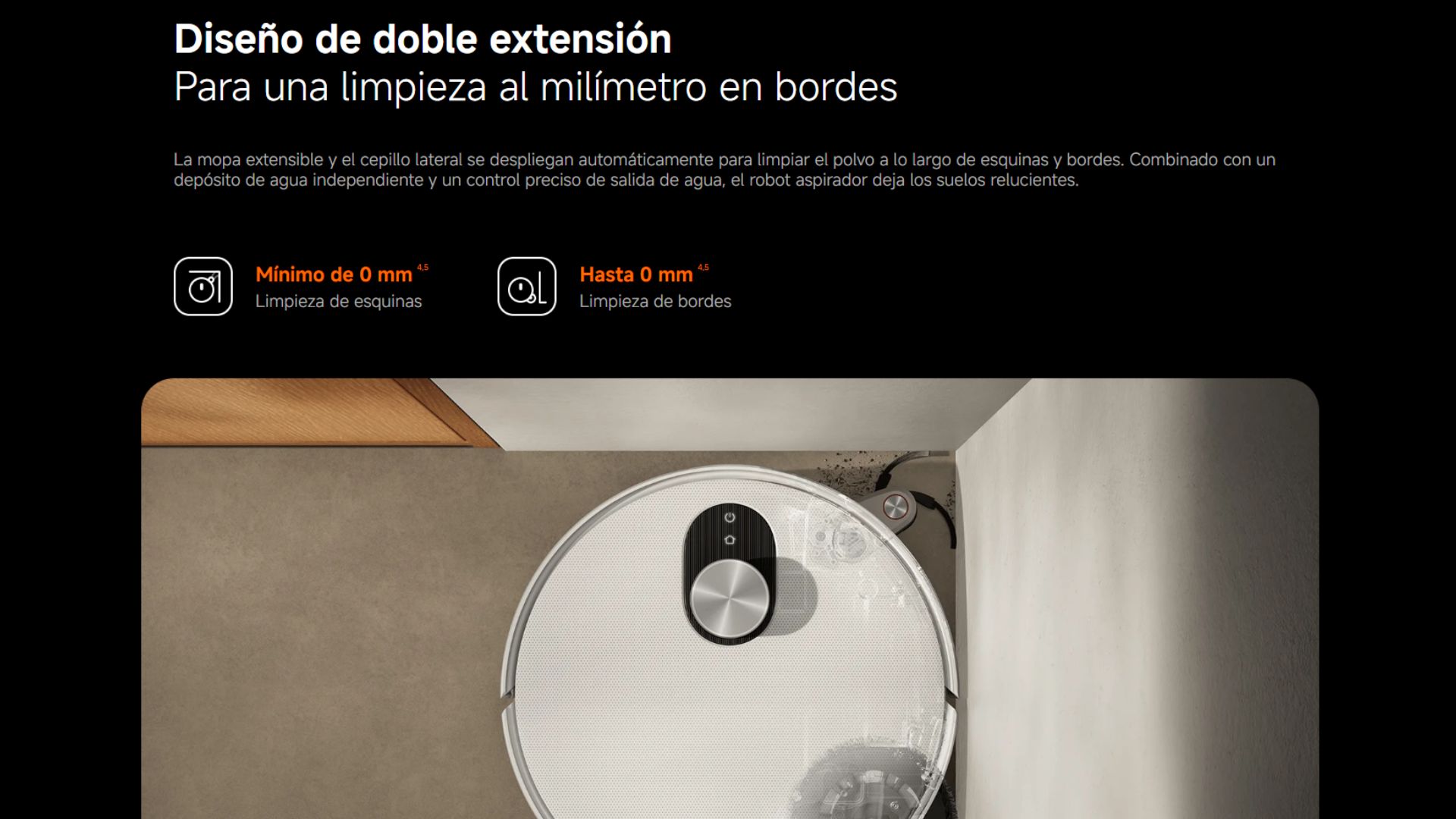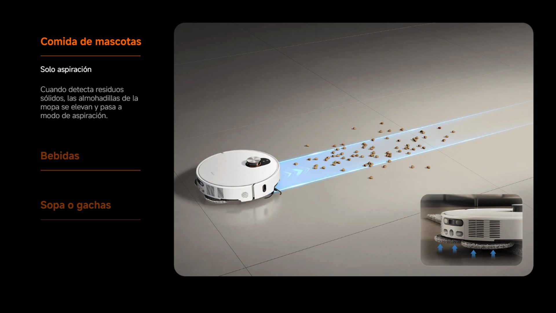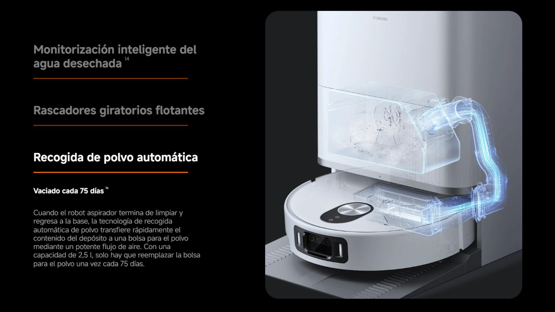 Contenido del Paquete 1x robot aspirador | 1x estación Omni (con bolsa desechable, depósito de agua limpia, depósito de agua sucia y tabla de lavado) | 1x compartimento de polvo | 1x filtro (preinstalado en el compartimento de polvo) | 1x cepillo lateral | 1x cepillo principal antienredos | 1x cubierta del cepillo | 1x juego de cables | 1 extensor de base tipo tabla de lavar | 2x soportes para almohadilla de la mopa (con 2 almohadillas de la mopa preinstaladas) | 1x manual de usuario | 1x guía de imágenes | 1x guía de inicio rápido | 1x aviso de garantía