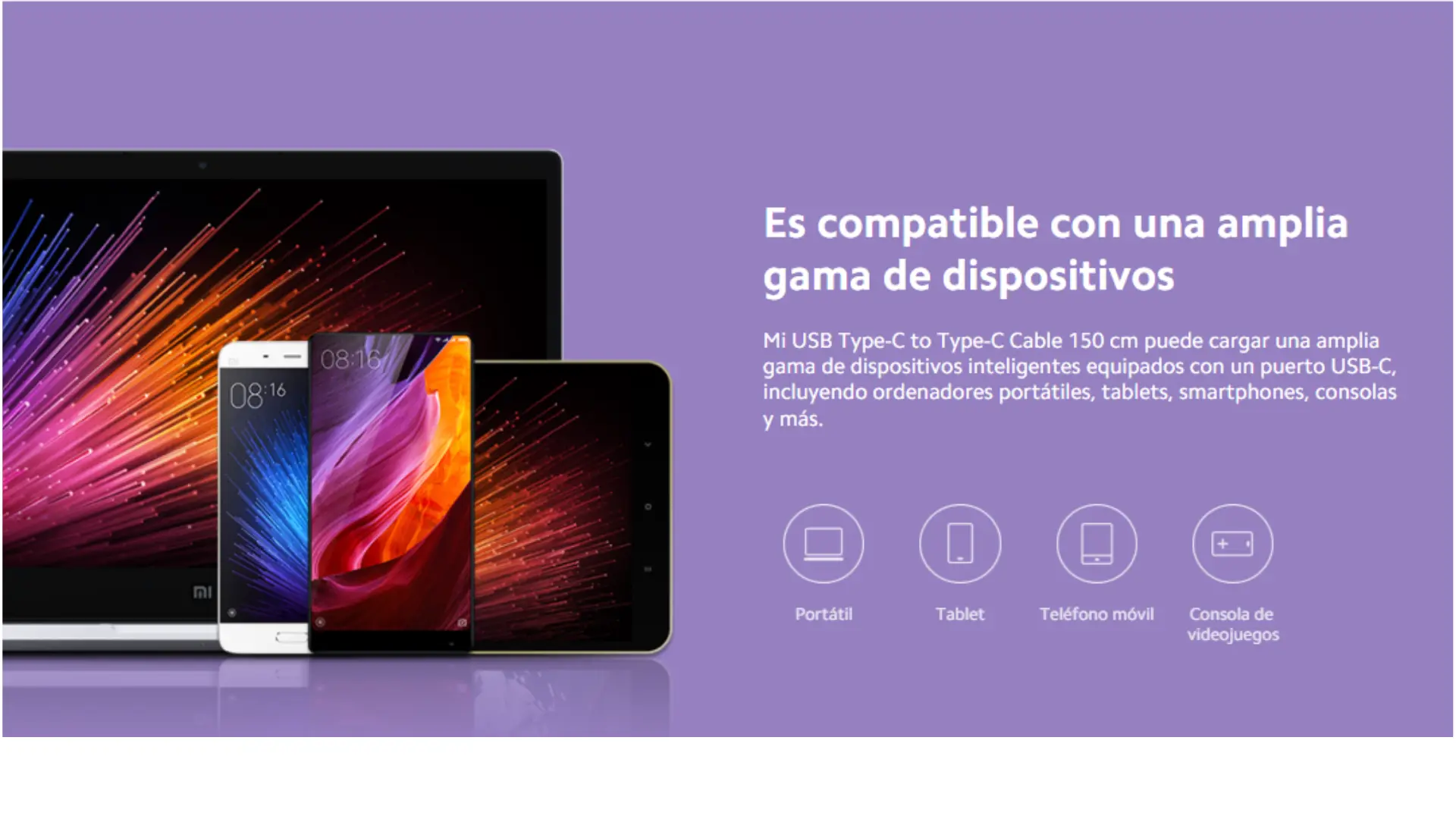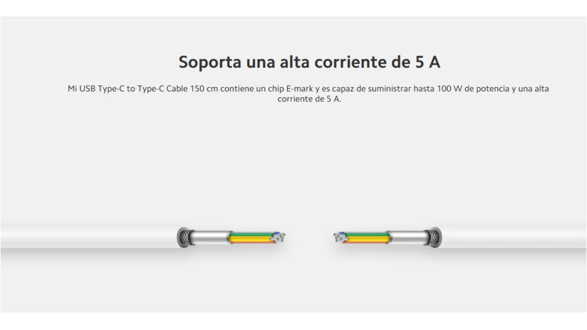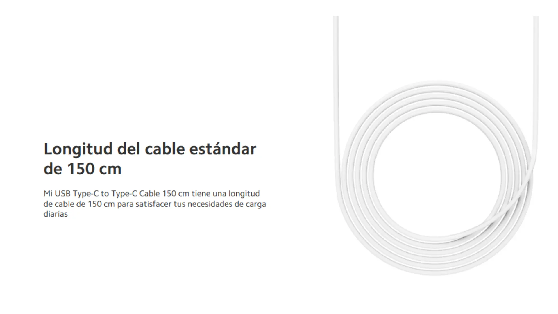 Descripción del producto El MI USB Type C Cable 150cm ofrece una conexión rápida, segura y estable para tus dispositivos. Con un diseño resistente y longitud ideal de 1.5 metros, este cable garantiza comodidad al cargar y transferir datos sin limitaciones de espacio. Compatible con smartphones, tablets, laptops y accesorios con puerto USB-C, soporta carga rápida y sincronización eficiente. Su construcción duradera y flexible evita enredos y asegura un rendimiento confiable en cada uso.