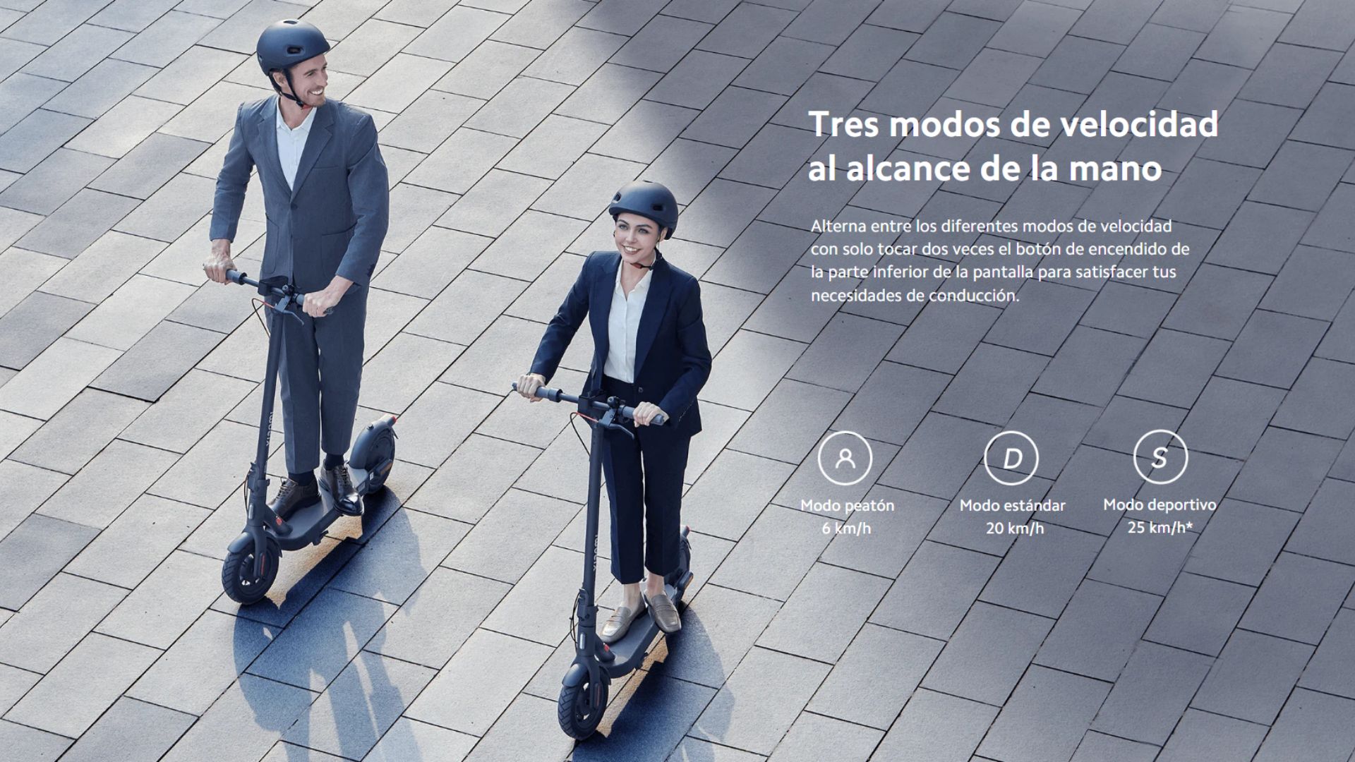 Velocidad Máxima 25 km/h (velocidad máxima para cada modo: modo peatón: 6 km/h; modo estándar: 20 km/h; modo deportivo: 25 km/h)