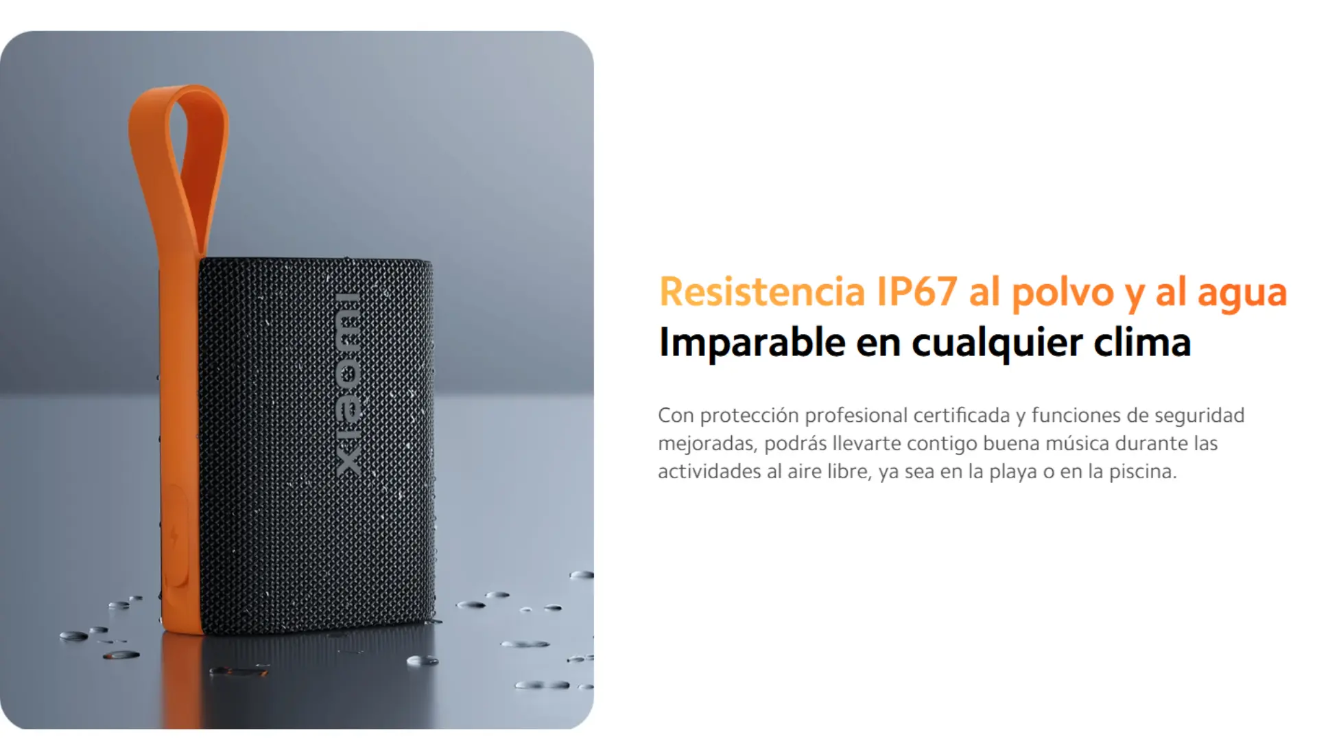 Parlante Bluetooth. Potencia 5 W - Bluetooth 5.4 - Conexión TWS de 2 altavoces - Resistencia al agua y al polvo IP67 - Hasta 10 horas de reproducción de música