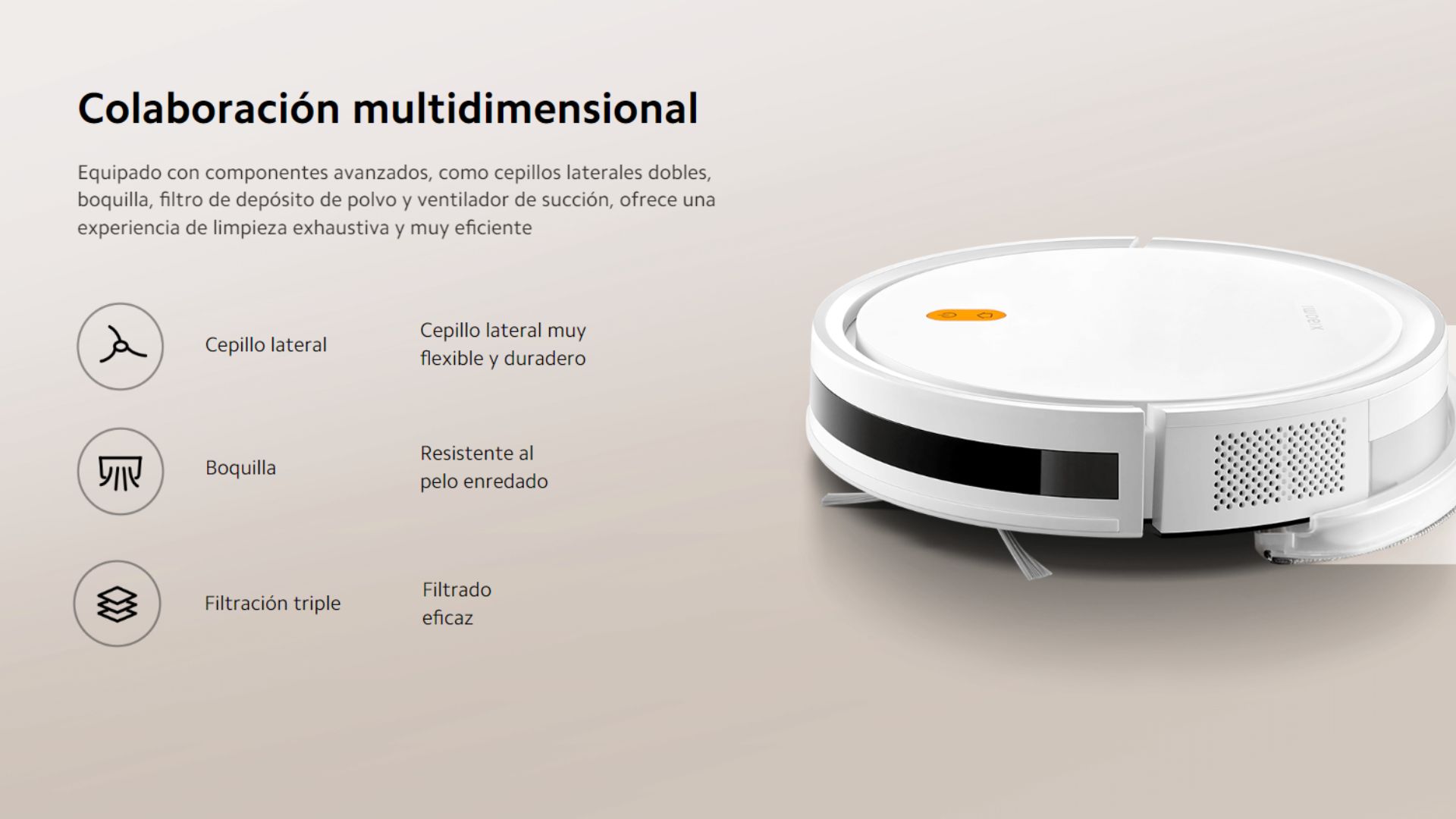 Contenido del Paquete 1x unidad principal | 1x compartimento de polvo (Instalado en la unidad principal) | 1x depósito de agua | 2x cepillos laterales | 1x almohadilla de la mopa (Instalada en el depósito de agua) | 1x adaptador de corriente | 1x base de carga | 1x cepillo de limpieza (En el paquete) 1 manual de usuario