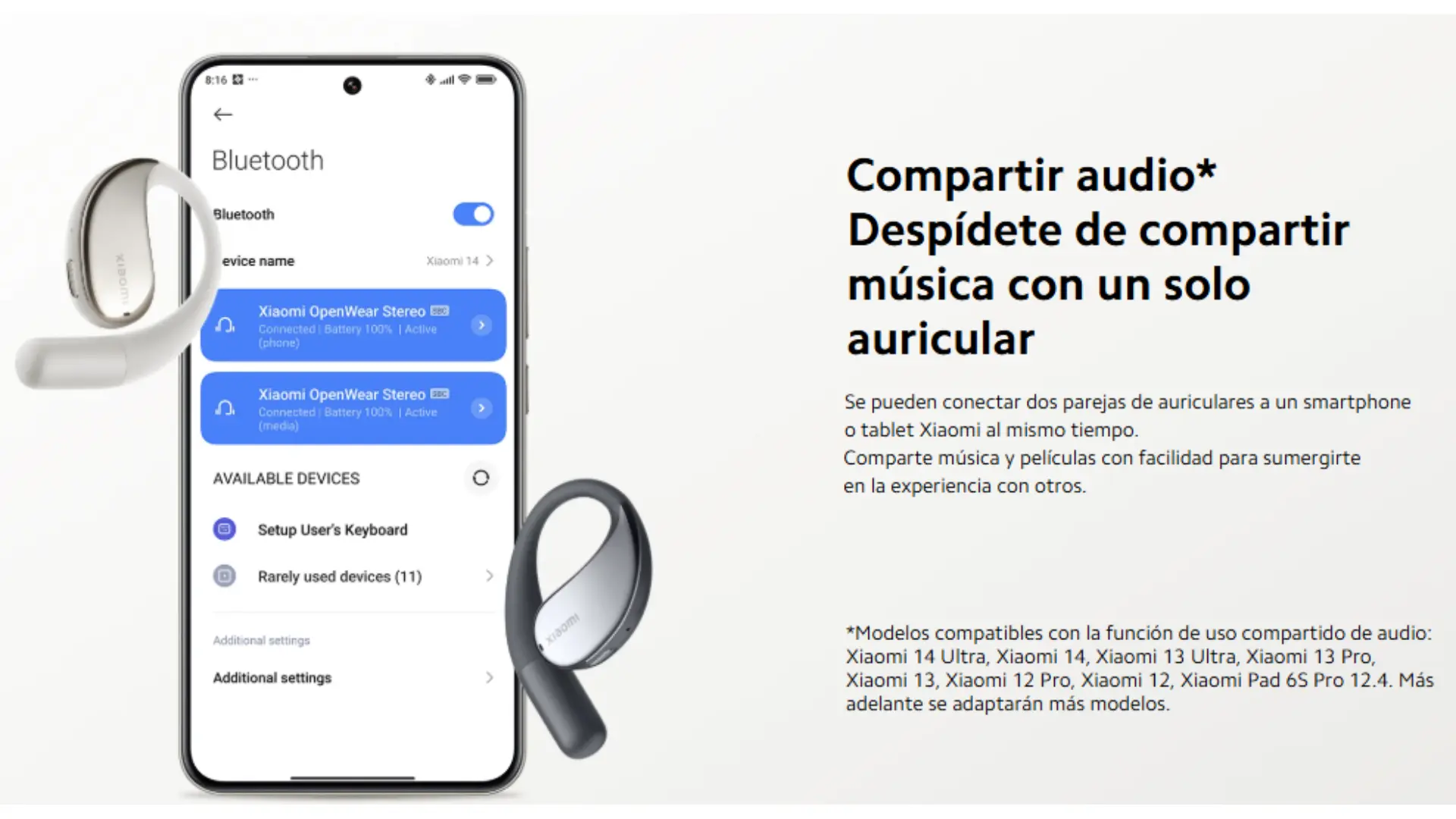 Los Xiaomi OpenWear Stereo - Grayson audífonos de diseño abierto que ofrecen sonido estéreo de alta fidelidad con conexión Bluetooth inalámbrica. Su estructura ligera y ergonómica garantiza comodidad durante largas horas de uso, mientras que su batería de larga duración permite disfrutar música, llamadas y juegos sin interrupciones. Incluyen micrófono integrado para manos libres y compatibilidad con Android, iOS y múltiples dispositivos.