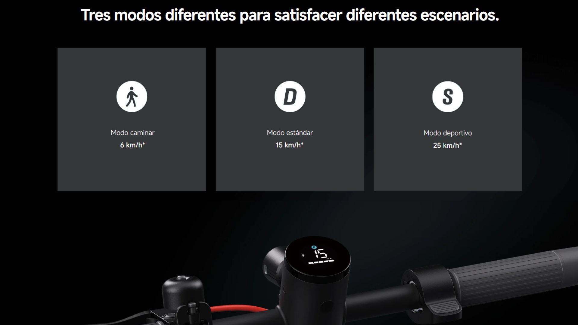 Velocidad Máxima 25 km/h (Velocidad máxima para cada modo: Modo caminar: 6 km/h; Modo estándar: 15 km/h; Modo deportivo: 25 km/h)
