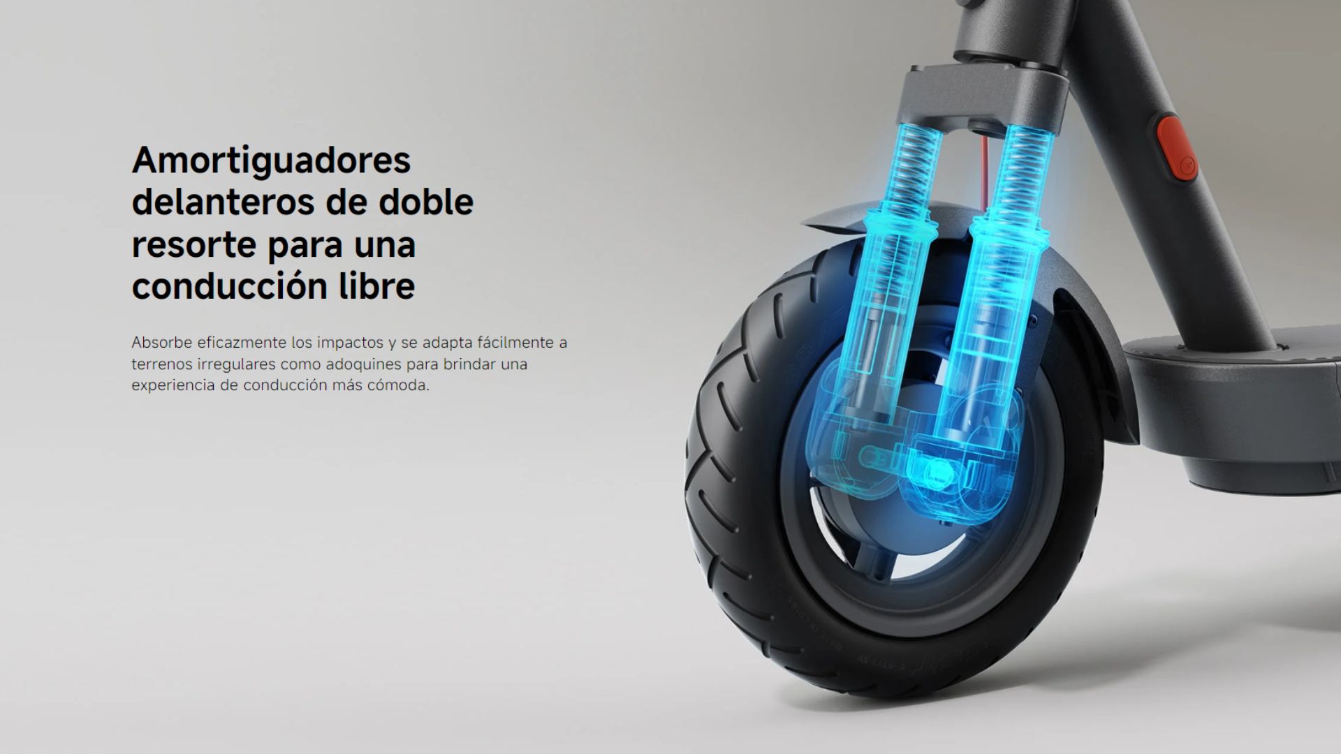 Amortiguadores delanteros de doble resorte | 60 km Batería de muy larga duración | Neumáticos anchos sin cámara | Faros delanteros automáticos