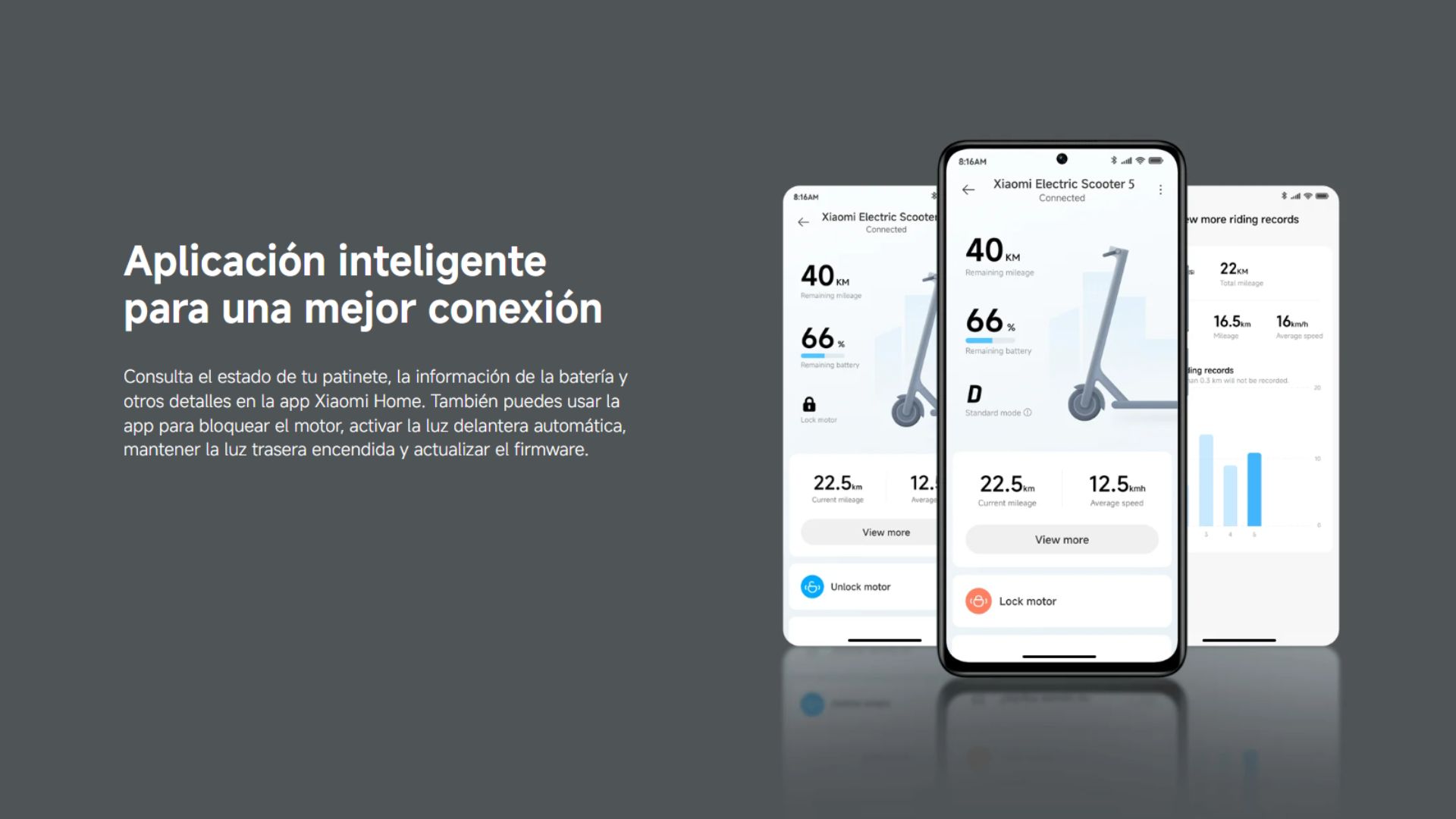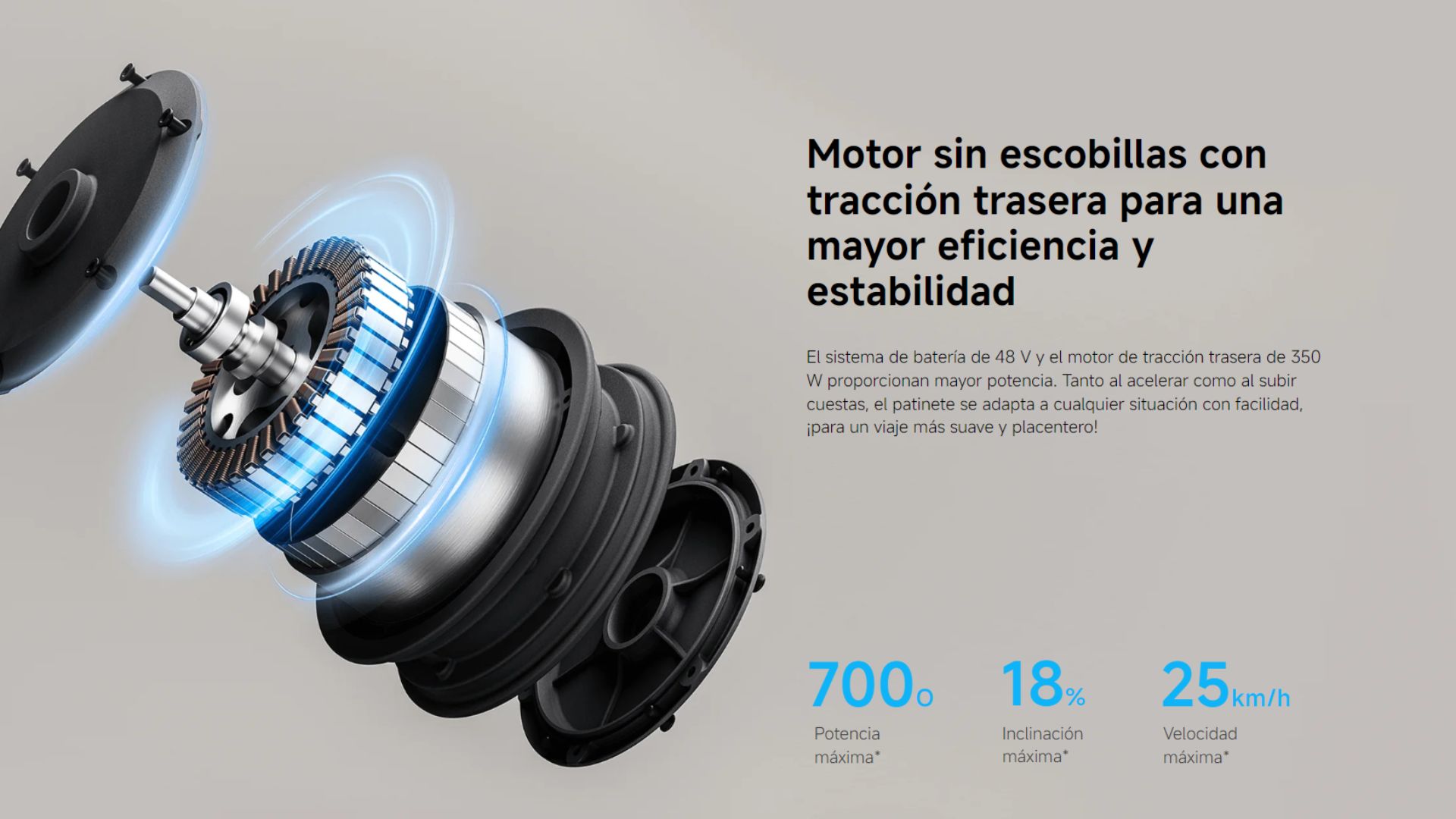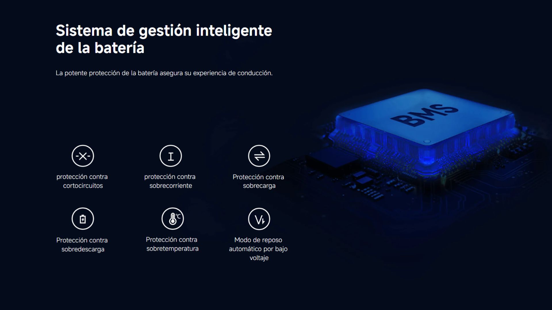 Velocidad Máxima 25 km/h (velocidad máxima para cada modo: Modo caminar: 6 km/h; Modo estándar: 20 km/h; Modo deportivo: 25 km/h)