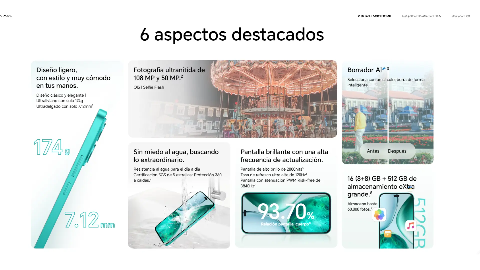 Borrador IA impulsado por el sistema HONOR AI | 108MP + 50 MP cámara con estabilización dual | Resistencia al agua y caídas SGS de 5 estrellas