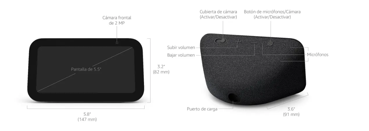 | Requisitos del sistema | El Echo Show 5 viene listo para conectarse a tu wifi. La app de Alexa es compatible con dispositivos Fire OS, Android e iOS y también se puede acceder a ella a través de tu navegador web. Sistemas operativos compatibles. Algunos servicios están sujetos a cambio o cancelación en cualquier momento, pueden no estar disponibles en todas las regiones y pueden requerir suscripciones adicionales. |